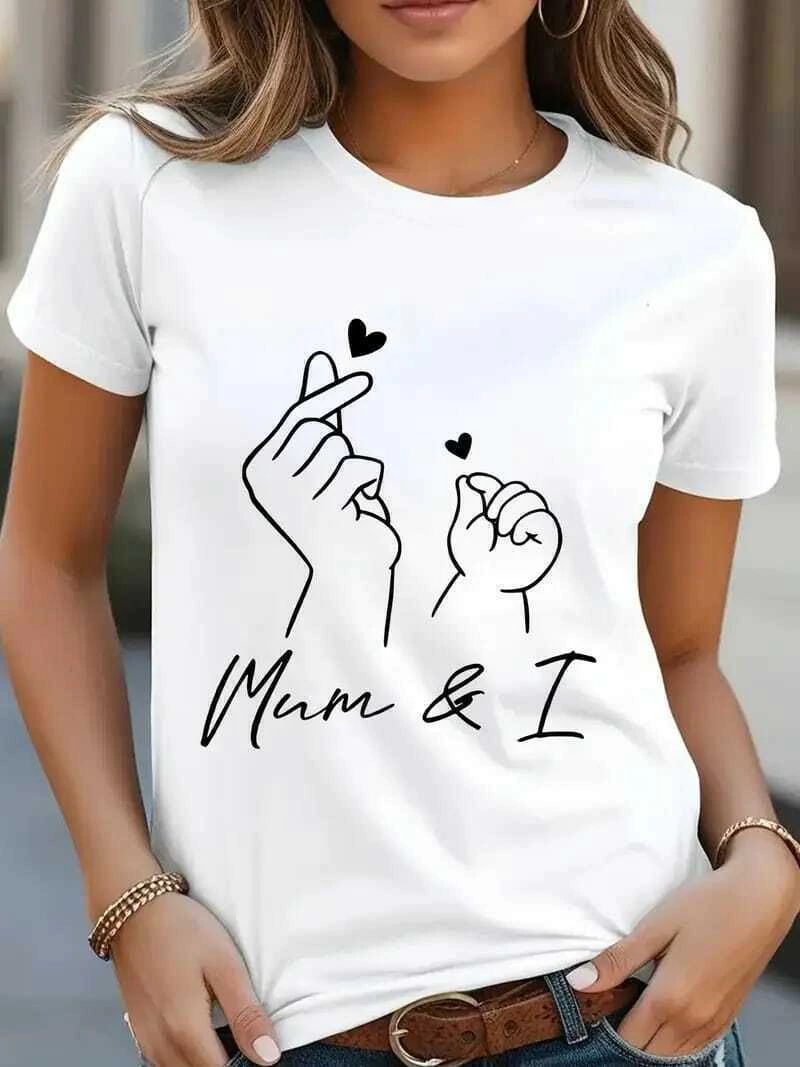 Camiseta T-Shirt Branca Cinza ou Preta Baby Look Mãe Mom & I Adulto Índigo Trend