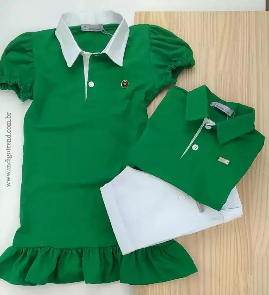 Vestido Polo Verde Bandeira Adulto Infantil Bebê Índigo Trend